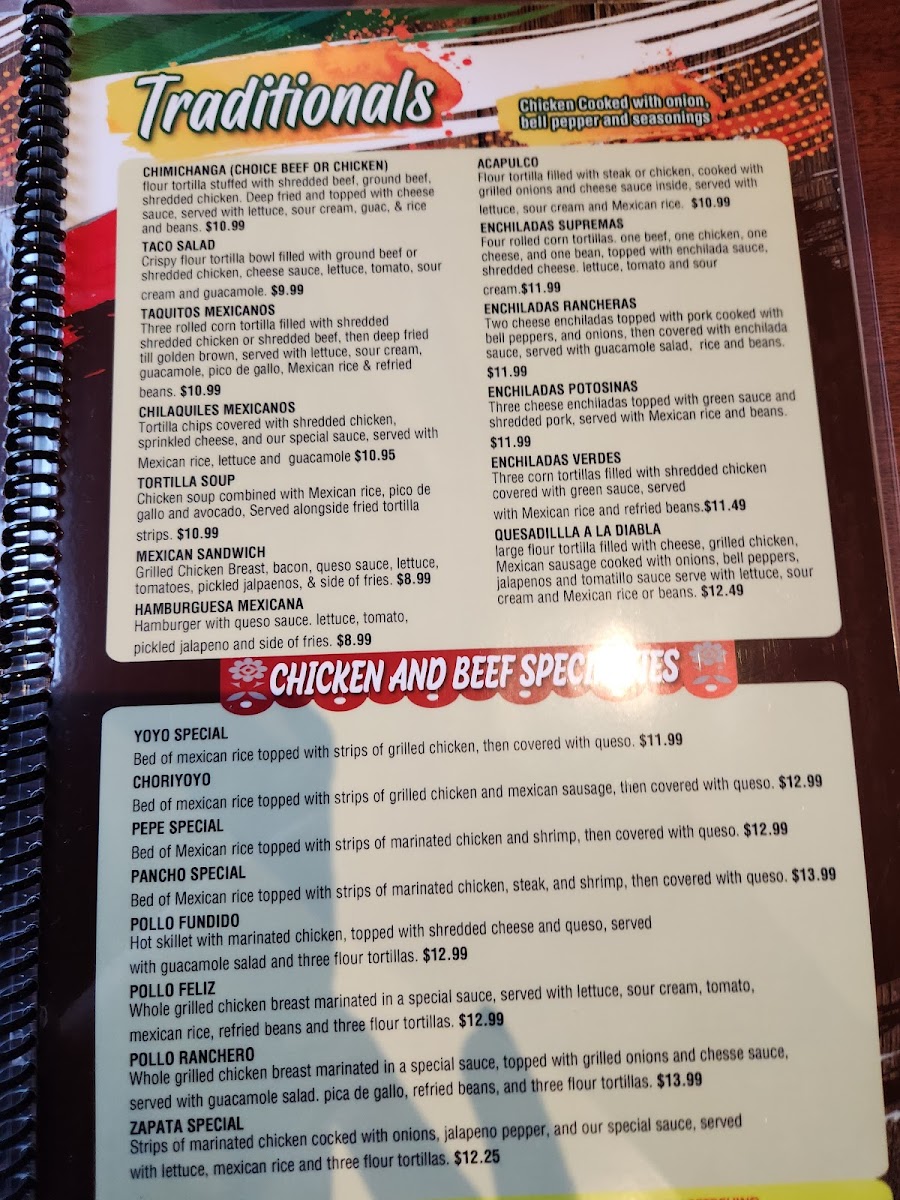 Bed of Mexican rice topped with strips of marinated chicken and shrimp, then covered with cheese sauce.